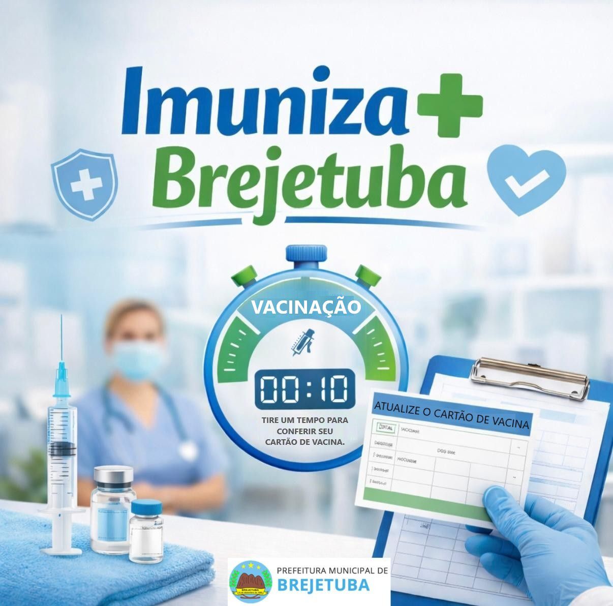 A partir do mês de Fevereiro, a Prefeitura Municipal de Brejetuba, por meio do Projeto Vacina + Brejetuba, informa que a sala de vacina passará a funcionar em novo horário, com atendimento durante o horário de almoço, facilitando o acesso da população aos serviços de imunização.